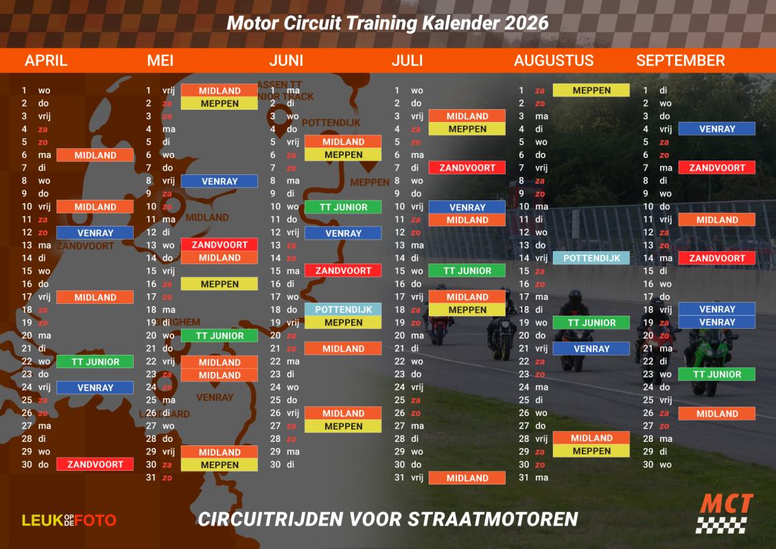 Bij Motor Circuit Training worden trainingen gegeven op verschillende soorten circuits. Ieder circuit heeft zijn eigen karakter en eigenschappen. Klik hieronder om een overzicht van de verschillende circuits te zien.